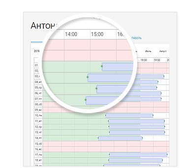 Если сотрудник не отметился в рабочий день или менеджер не поставил ему часы, табель подскажет.